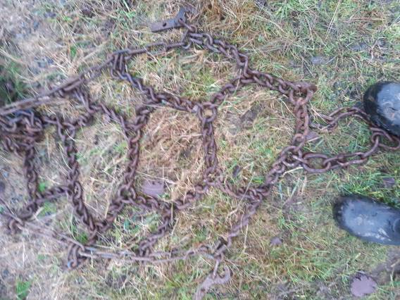 | Lite olika, en snökedja med piggar och en utan. Fyrkantmönster |