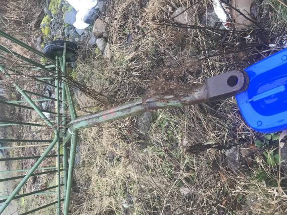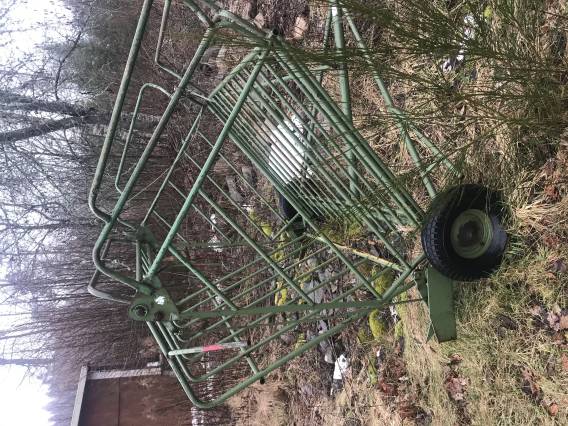 Kopplas efter hö-/halmpress för att samla 8-10 småbalar. Alternativ användning till 4-hjulning för transport av hö, halm, vatten m m. Två friska däck 6.00-9. Inomhusförvarad.