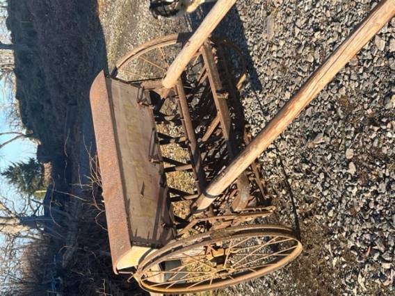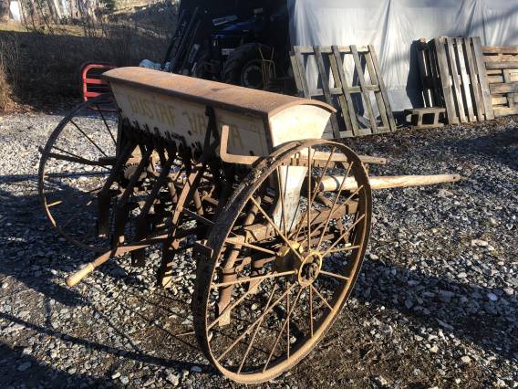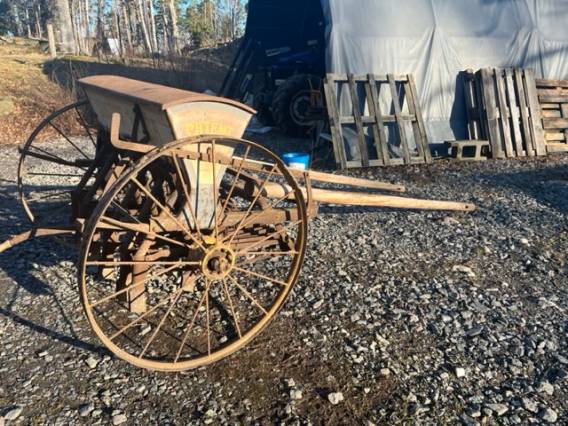 Såmaskin äldre till häst ovanligt bra skick då den stått inne. Troligen från 40-talet.
