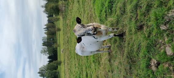 Vackra Bernadotte född 2021-12-22 har tjänstgjort två säsonger hos oss och söker nu nytt hem. Han är social och gillar att bli klappad. Han stod uppbunden som liten men vi har haft honom på lösdrift. Han ger mkt välskapta och söta kalvar.