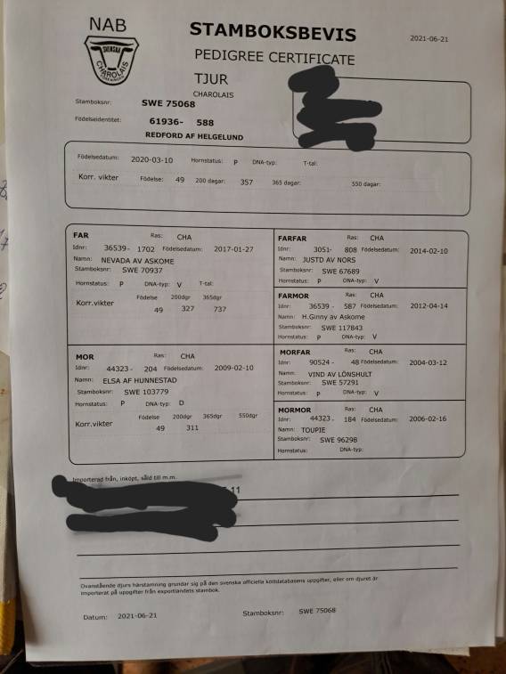 CHAROLAIS tjur född 2020 KRAV godkänd tjur med härstamningsbevis. Hos oss har han haft 100% dräktighet med en besättning på 23 kor och lätta kalvningar