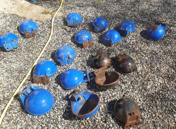 Vattenkoppar 13 st begagnade i gjutjärn olika skick enl.foto.Kan användas som foderskålar,blomlådor m.m. Säljes även styckvis 75 kr/st