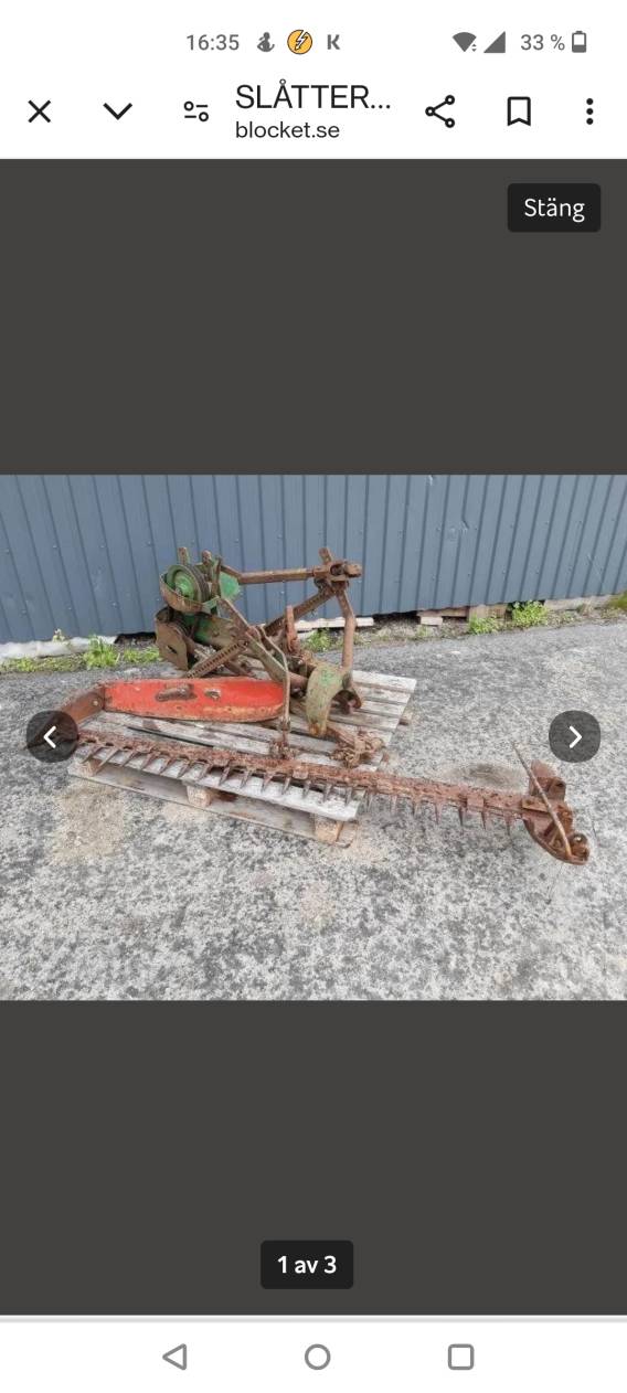 Slåtterbalk att hängas på tre punkten, drivning via kraftöverföring saxeln. 2 st slåtterbalkar ingår 2 st knivar till varje slåtterbalk Pris 3800kr/ st Paketpris för 2 st 5600 kr Obs lånad bild