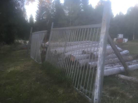 Grindar komplett med grindstolpar. En grind har en skada på gallret. Pris 3000 kr eller bud. Finns norr om Nybro. Lasthjälp.