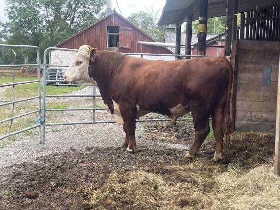 | En underbar, lätthanterlig Hereford tjur med fin stamtavla |