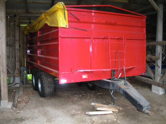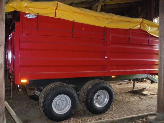 Svenskbyggt kraftigt boggiesläp med rullkappell i nyskick. Däck 17-500.