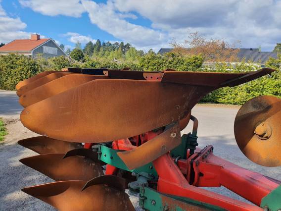 ( SÅLD ) Beg växelplog Kverneland 4 skärig. Kropp 8. Vändhuvud 120. Skivrister. Skumvingar. 14". Stödhjul. Några ny slitdelar bytta. Nya spetsar.