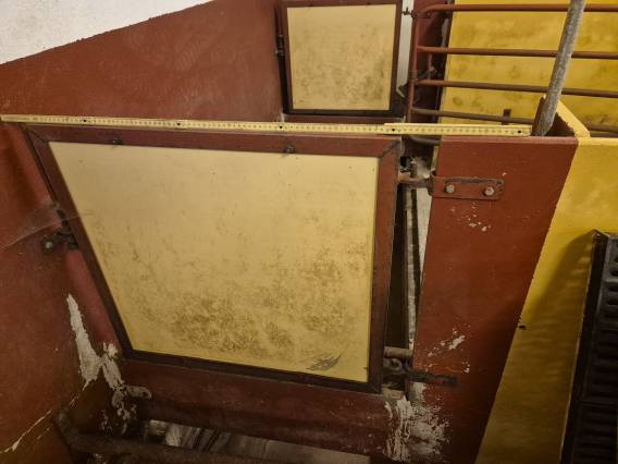 | boxmått 220 cm * 320 cm plast spaltkasset 92 cm* 20 cm betongskivor med dörr över spalt. |