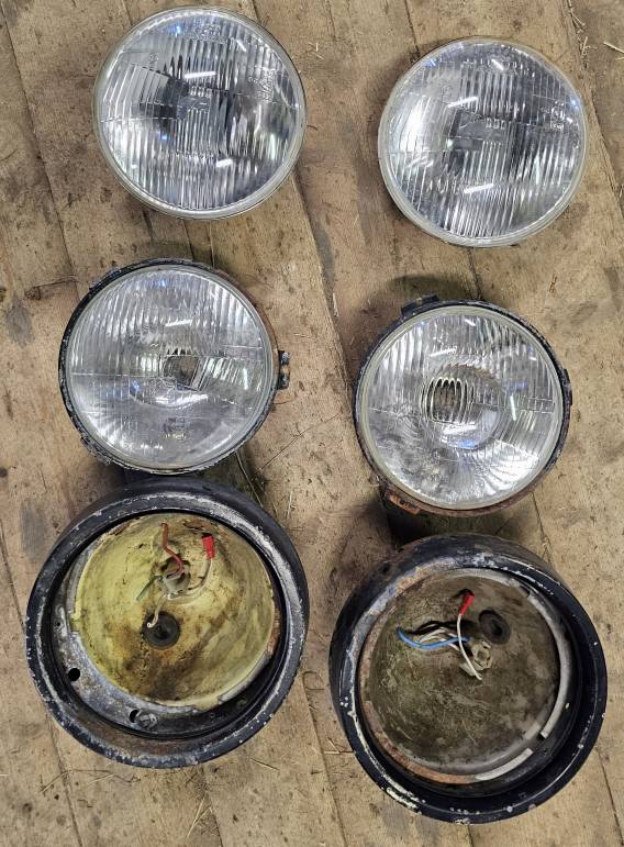 | STRÅLKASTARLAMPOR 2ST. NÄSTAN NYA 2 ST. BÄTTRE BEGAGNADE. 2 ST. KOMPLETTA POTTOR MED SARGAR |