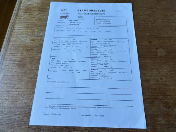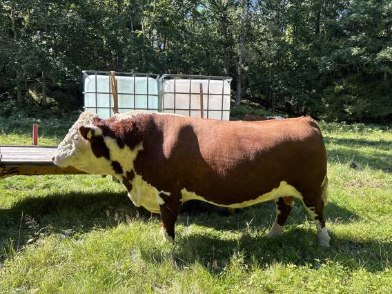 Lugn och trevlig hereford tjur säljes. Bra temperament . Lätta kalvningar. Född 2022
