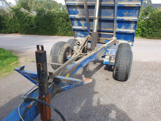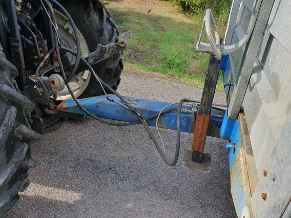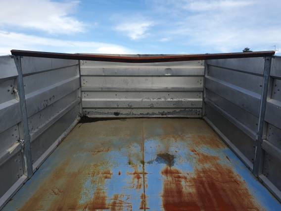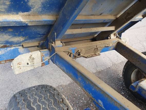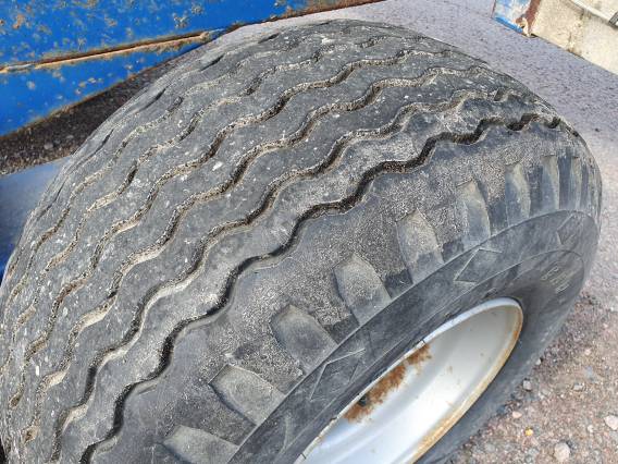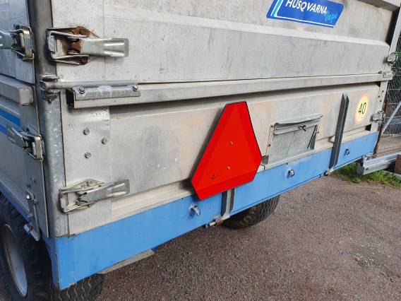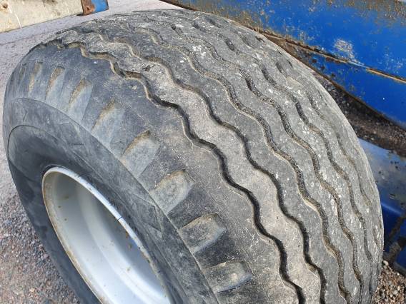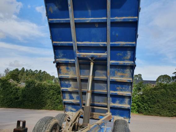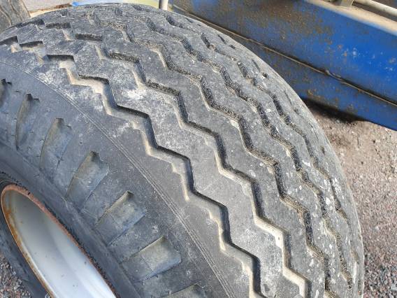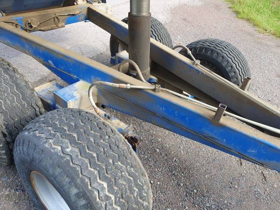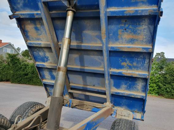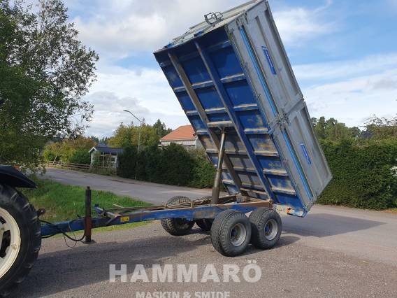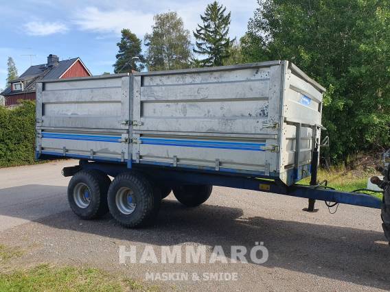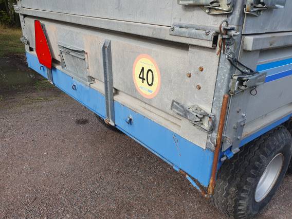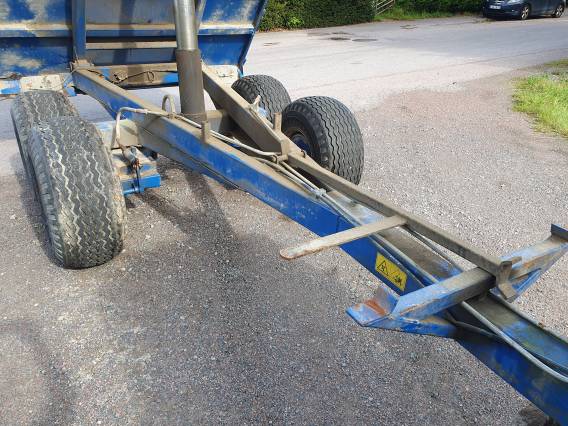 Beg spannmålskärra Husqvarna Vagnen TK 1112. Årsmodell -01. Totalvikt 13170 kg. Max last 11000 kg. Aluzink lämmar. Bromsad. Belysning. Stödben. Mittbåge för pressening. Däck 400/60-15.5.