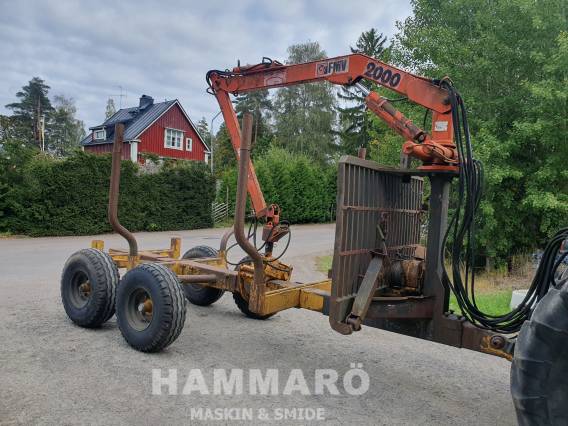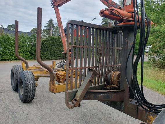 | ( SÅLD ) Beg skogsvagn Moheda vagnen med FMV 2000 kran. Boggi. Flyttbar axel & banke. Frontgrind. 4 stakar med förhöjning. 6 st stakhål. Manuella stödben. Grip KG 180 (ca 3 år gammal) Dubbla svängcylindrar. Vinsch Star kraftuttagsdriven. Flerspakspaket. Bra däck. Inga lagningar eller läckage. |