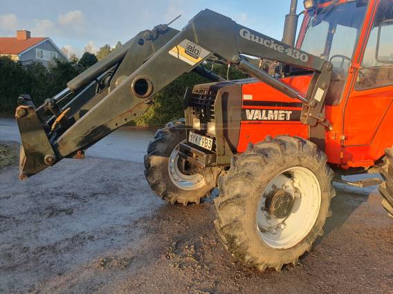 | ( SÅLD ) Beg traktor Valmet 405 Årsmodell -87 Ca 6095 tim. 4WD. 3 cylindrig dieselmotor med turbo. Hitchkrok. Fri returuttag. Vridbar stol, dock ej vändbar. Arbetslampor fram & bak. Motorvärmare. Frontlastare Ålö Quicke 430 monterad -94. Euro fäste. Bra skick! |