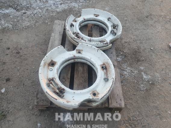 4 st beg hjulvikter 80 kg/st. Har suttit på Valtra 6650. Passar säkert fler modeller. Komplett med bult.