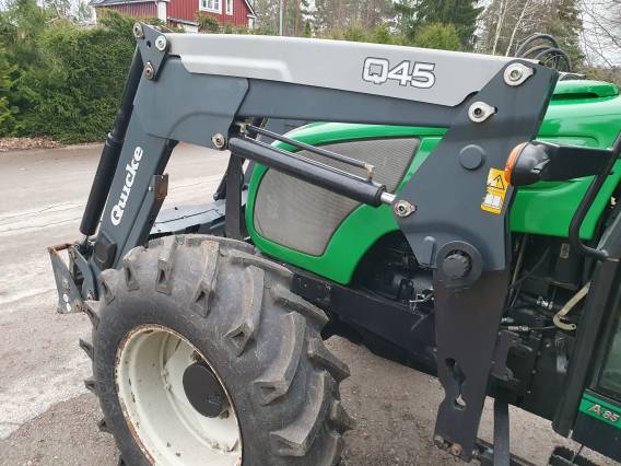 ( SÅLD ) Beg traktor Valtra A85. Årsmodell -06. Ca 4275 tim. Mekanisk fram & backväxel. Hitchkrok. Vändbar stol. Frontlastare Quicke Q45. Euro fäste. Tredje funktion. Nya däck fram & bak. Nyservad med filter och oljor. Mycket fint skick!