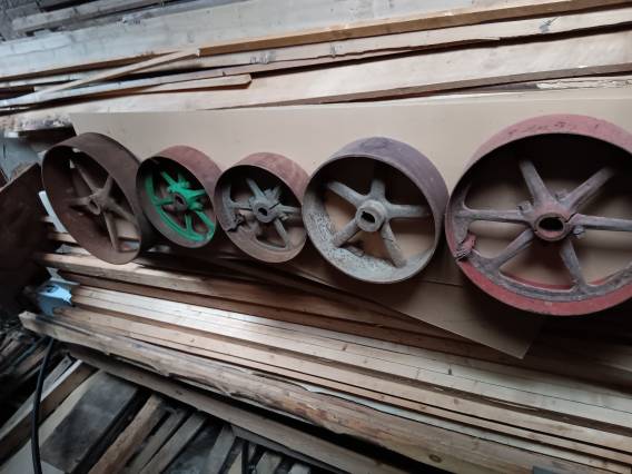 Div. remskivor 200:-/styck. Järn diameter: 37, 37, 43, 50, 56 cm Trä diameter: 27, 37 cm.