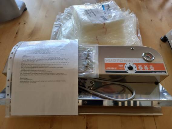 Rejäl vakuumpackare med många påsar.